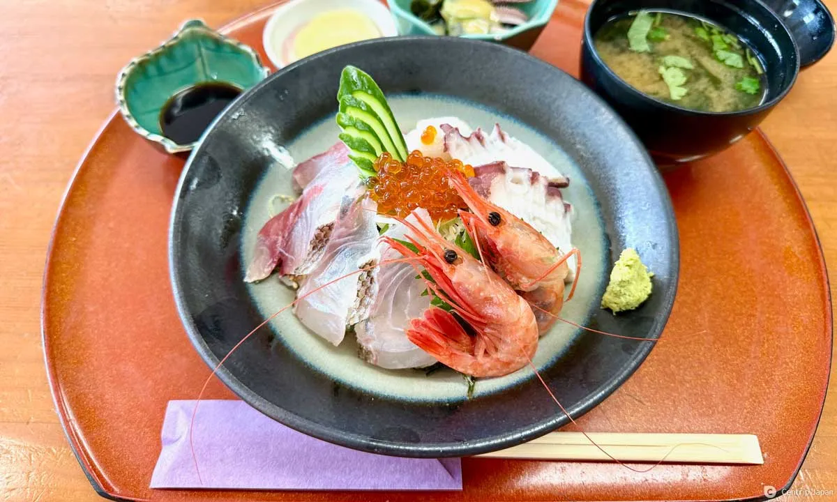 Seafood bowls featuring seasonal fish are highly recommended. During Echizen crab season (November 6 to March 20 each year), you can also enjoy luxurious crab dishes.