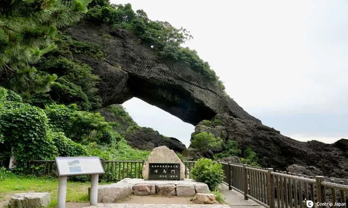 Along National Highway 305, you'll find Kocho-mon gate, a massive rock arch carved by the sea over countless years. It was once known as a natural tunnel because the national highway used to pass directly beneath it. Now, a new tunnel has been built, so vehicles and people can no longer pass through the arch. However, you can still approach it on foot to see the beautiful contrast between the Sea of Japan, the towering cliffs, and the rich greenery, making it a popular photo spot.