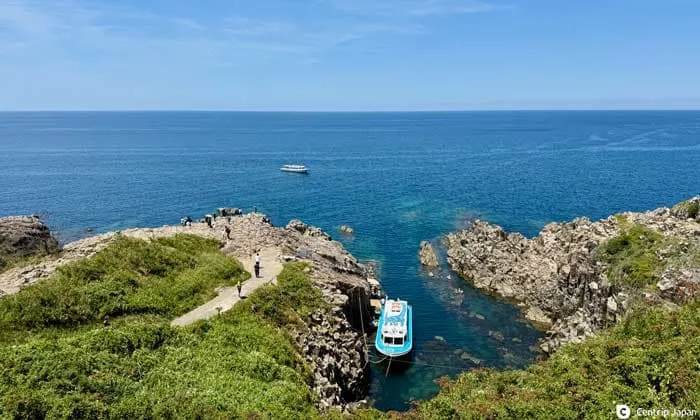 A walking trail circles the island in about an hour, offering views of the basalt cliffs and distant Tojinbo. The quiet charm here provides a peaceful contrast to the lively atmosphere of Tojinbo.