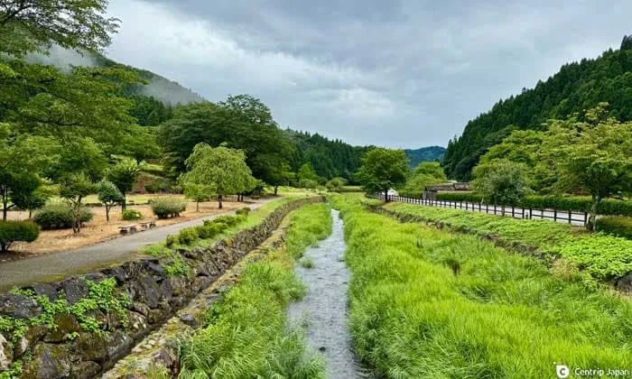 Traditional inns nestled beyond beautiful rural fields in Awara Onsen