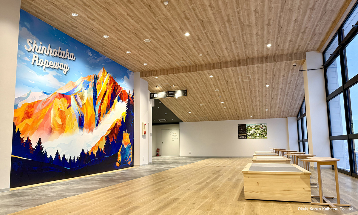 Itadaki no Mori, completed in 2024, features several new additions: the Ooshirabiso Road for forest bathing and alpine plant observation, Nishiho no Odoriba for viewing the majestic Nishi-Hotaka mountain range, and the newly created Gondola Stage for various events.