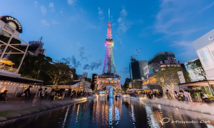 RAYARD久屋大通公园位于荣商圈精华地段,是结合公园与商家的复合式区域。公园内耸立著名古屋地标「中部电力MIRAI TOWER」,铁塔下方整条镜面水池,将铁塔倒映在水面,绝美又梦幻,是外国旅客必打卡的网美景点。