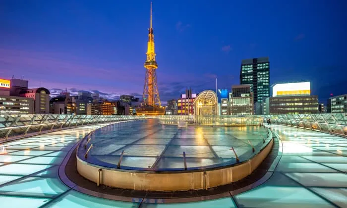 造型独特、宛如一艘船的「绿洲21」是结合公园和巴士总站的复合设施,顶楼的「水之宇宙船」采用玻璃地板,中央有潺潺水池,刚好将对面的「中部电力MIRAI TOWER」倒映水面。夜晚点灯时与铁塔两相竞美,十分梦幻。最重要的是,这么美的夜景可以免费欣赏!