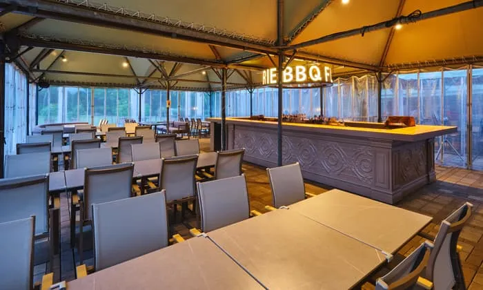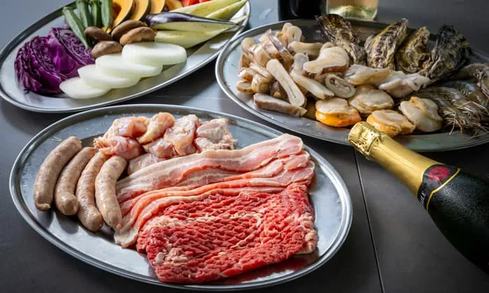 所有烤肉用具与料理店家都帮你准备好,厚切肉排、海鲜、蔬菜等都食材都切好,你只需负责享受烤肉乐趣。还有饮料喝到饱服务,由专人为你现调饮品。餐厅营业到晚上10:30,可以慢慢享受夜晚烤肉的惬意感。
