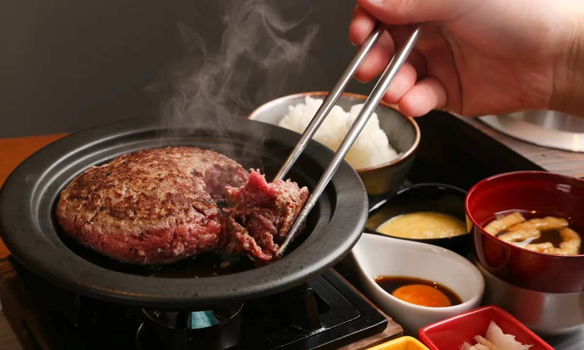這是間尖峰時間常大排長龍的漢堡排店,它用幾個堅持擄獲了客人的心,像是100%使用和牛絞肉,保證最佳肉質;下單後用釜鍋現煮的白米粒粒分明、飽滿濕潤;由客人自己將漢堡排煎到最佳熟度,鮮甜多汁的肉排配上美味的白飯,怎麼可能不好吃!